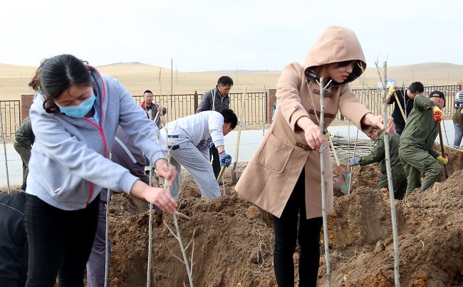 公司上下齊動員,全員參與到礦山的綠化美化,截止5月25日,參加人員累計達到1500人次,共種植楊樹5100棵、丁香樹900珠、松樹600棵、種植苜蓿草籽646斤、沙打旺草籽578斤、油葵籽20斤、油菜花籽50斤,種植面積累計約160畝;動用鉤機、鏟車、灑水車、翻斗車、等工程機械847多臺次,覆土方量34114.66立方米、倒運廢石73188.7噸,硬化路面2000平方米。