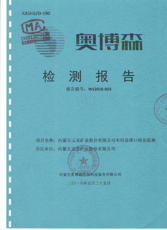 內蒙古玉龍礦業股份有限公司 自行監測方案